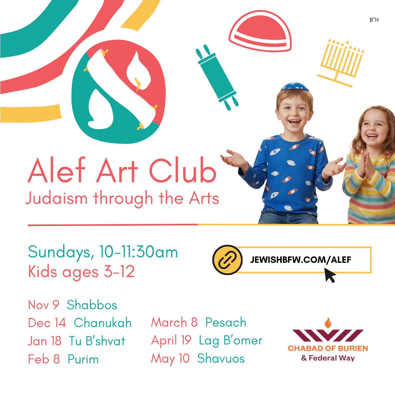 Kids can’t wait for Alef Art Club! Each month, they dive into a world of color, stories, and creativity, exploring Jewish life through art, games, and hands-on projects that light up their imagination.