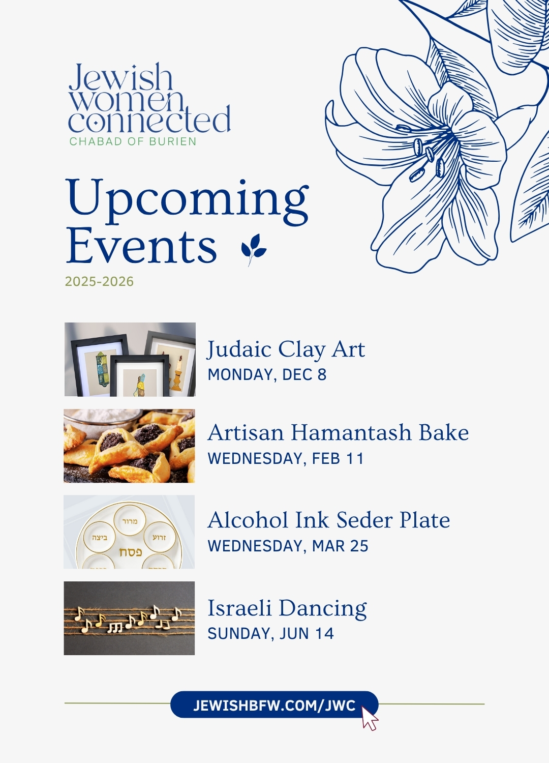 The Jewish Women Connected comprises women of diverse affiliations and backgrounds, to have a good time, to explore Jewish themes and to work together to create and enhance community projects.